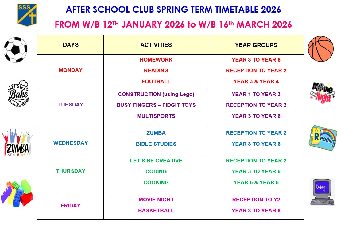 All clubs starts at 3.30pm and finishes at 4.30pm.